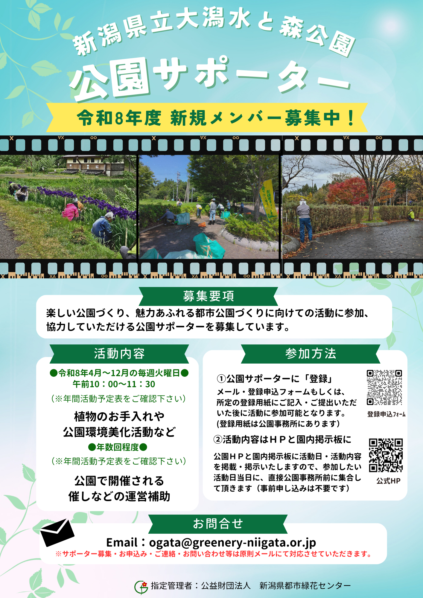 申込用紙はこちら → 【新潟県立大潟水と森公園 サポーター登録用紙】